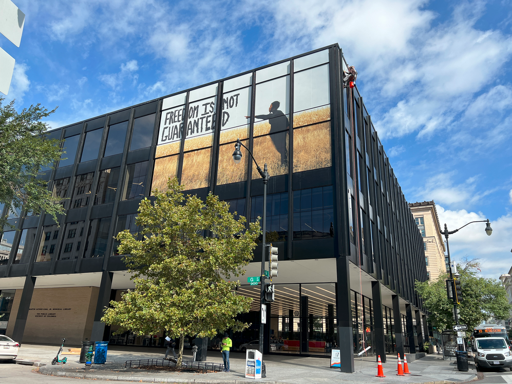 Join us for a Banned Books week conversation with renowned artist Xaviera Simmons, whose billboard artwork 'FREEDOM IS NOT GUARANTEED' is on view at the MLK Library this fall.