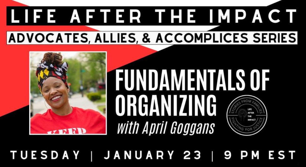 On January 23rd, 2024, Life After The Impact is continuing its Advocates, Allies, & Accomplices Series from our first season, this time with an emphasis on the “Fundamentals of Organizing.” Hosts Roxane Johnson and LaToya Benton will be hearing from the expertise of April Goggans.