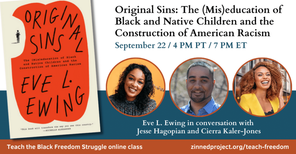 Scholar Eve L. Ewing, in conversation with Rethinking Schools editor Jesse Hagopian and Rethinking Schools executive director Cierra Kaler-Jones, will discuss her book, Original Sins: The (Mis)Education of Black and Native Children and the Construction of American Racism, an examination of how the U.S. school system helps maintain racial inequality and social hierarchies. ASL interpretation provided and PD certificates offered to attendees.
