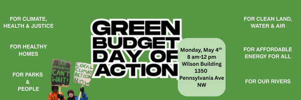 Organizations and residents from across the District are gathering on Monday, May 4 at 8am at the John A Wilson building, calling on the DC Council: Don’t defund our communities and our climate in our local DC budget. After a press conference, green-shirted supporters will descend on the Wilson building, meeting with Councilmembers and staff, sitting in committee hearings, and taking creative action to call attention to the need to sustain DC’s local budget commitments to our neighborhoods, our climate, and our natural places.