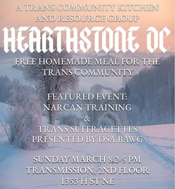 Hello DC trans community! Please join us on Sunday, March. 8, at 2-5pm for our monthly free community meal @transmission.dc!